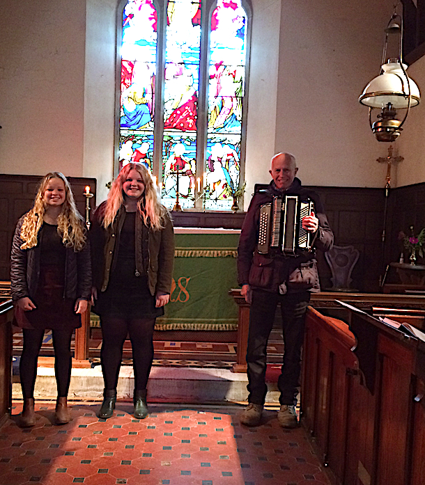 …..Therefore the project engaged the assistance of the professional folk musician John Kirkpatrick who performed at both Church events & was joined in Sarn two sisters, Nerys & Catrin whose singing skills are being professionally developed.