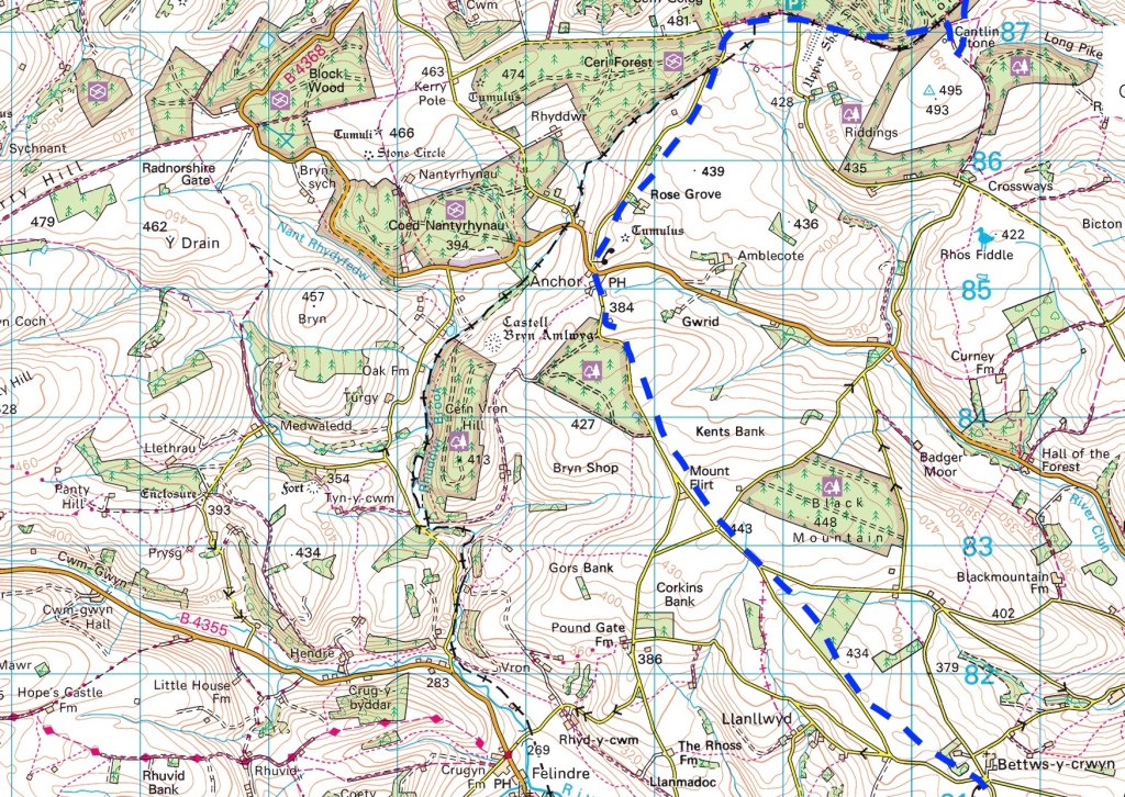 The term ‘anchor’ is appropriate as the settlement and pub provided refuge in the deceptively high border hills. The farm, pub and cottages are (with Mount Flirt farm) the only habitations on the 16 kilometre journey between Bettws and Sarn.