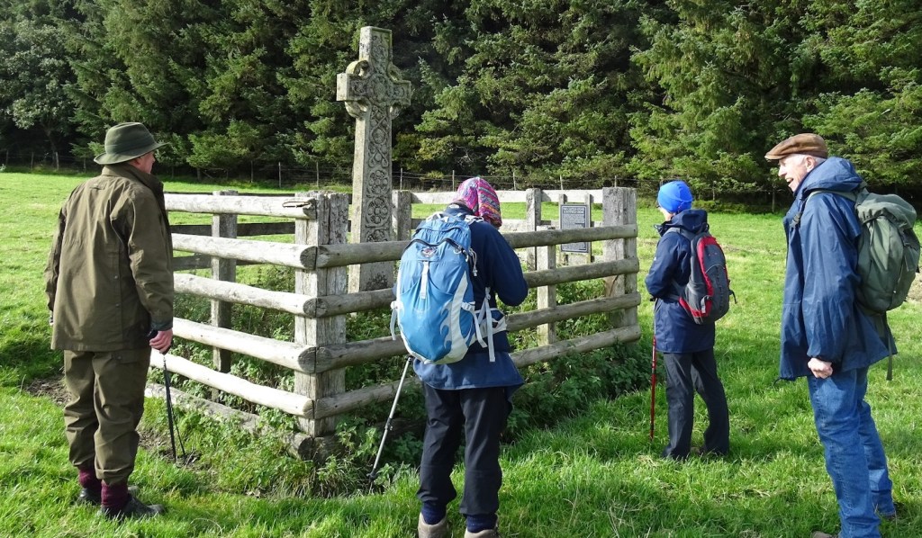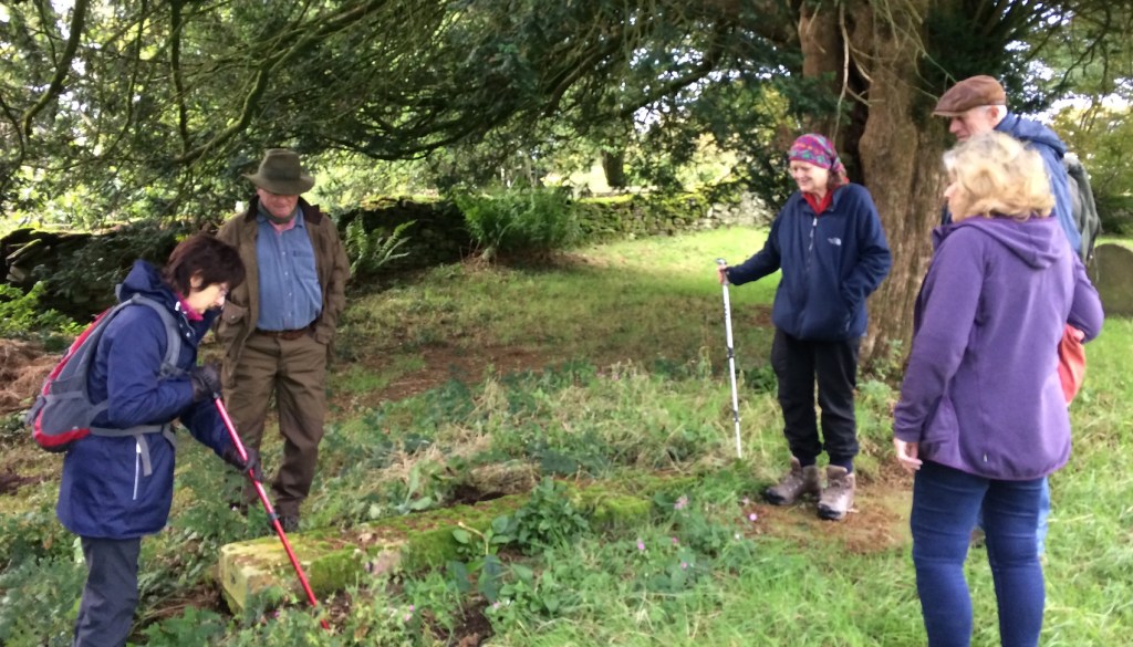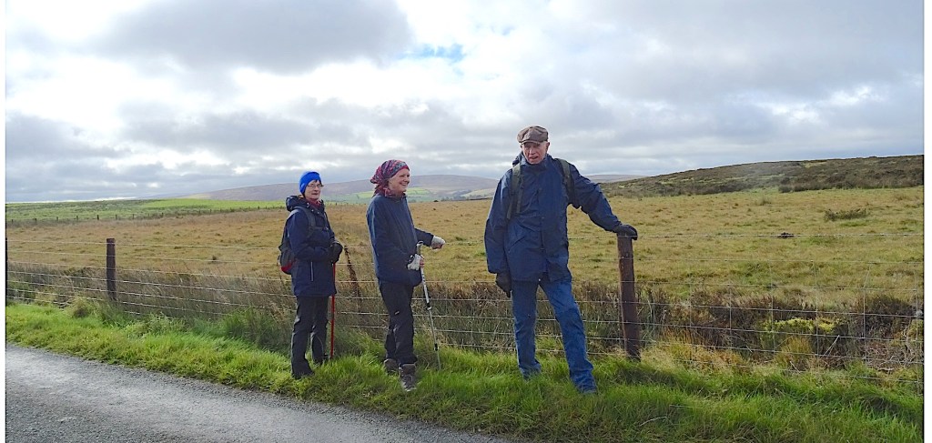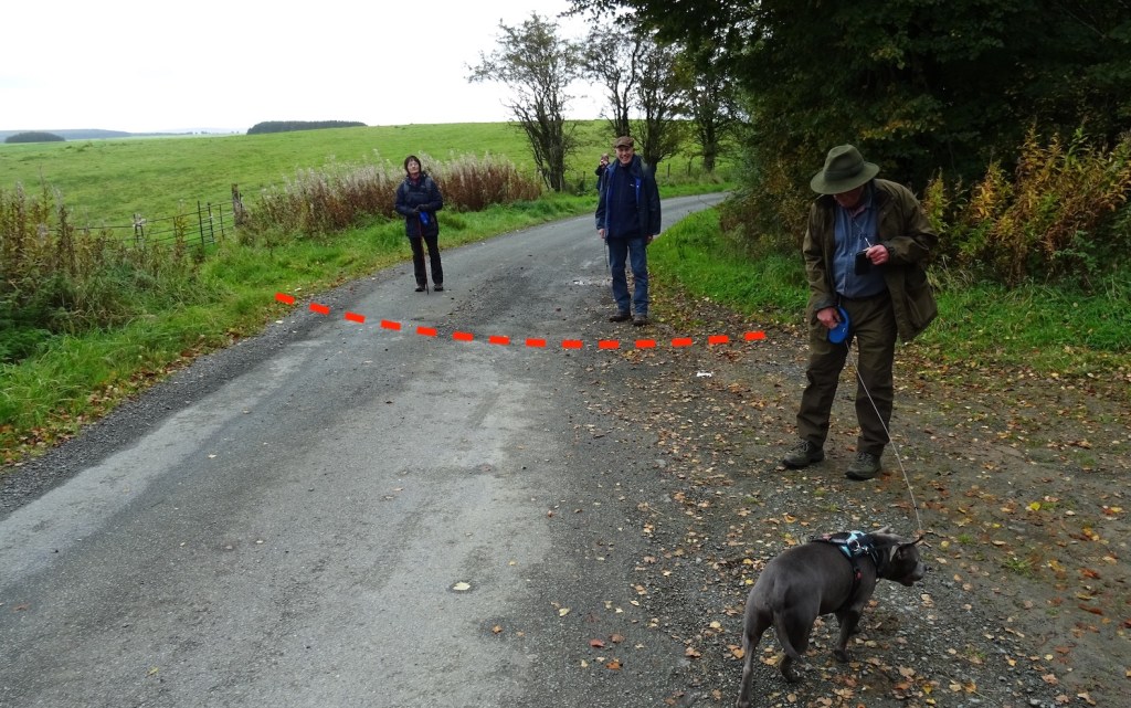 After the Cantlin Stone the walk passed into the forestry plantation and descended …. but not without difficulties created by an enthusiastic Bull Terrier determined to chase and capture pheasants…..