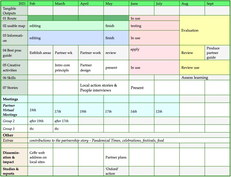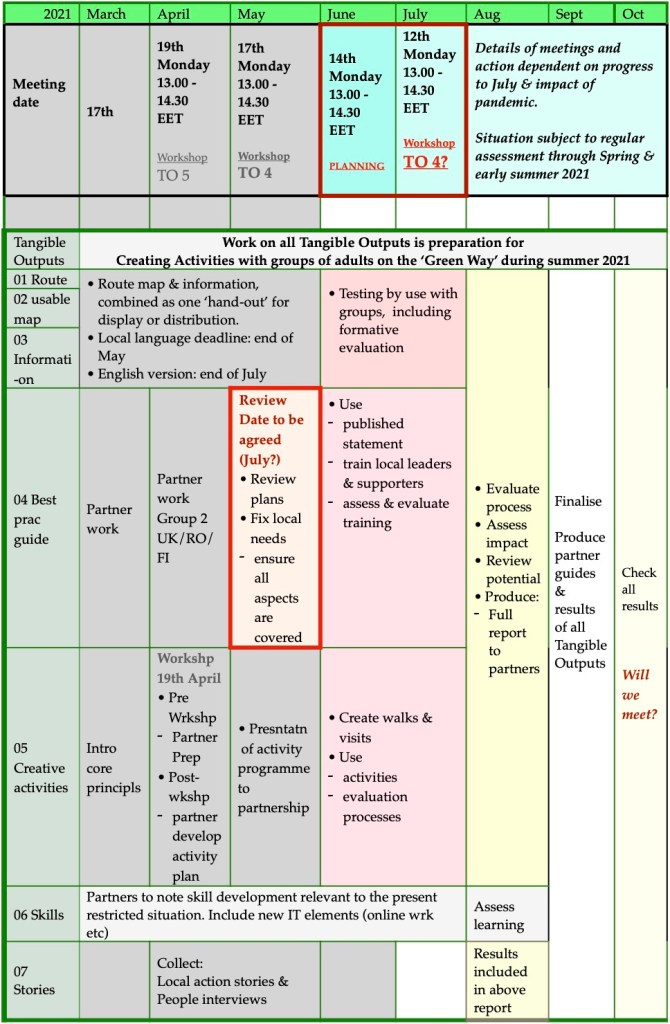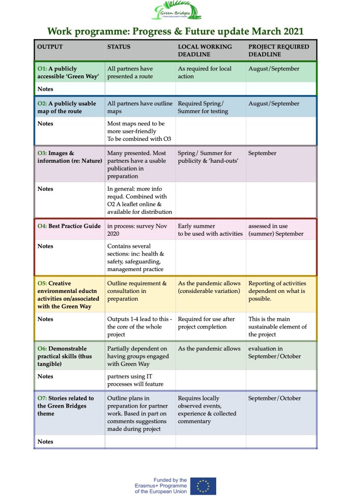 Whilst some practical and individual work was possible, there were considerable limitations due to the continuing social distancing and isolation in partner localities combined with the uncertain prospect regarding full, physical, partner meetings.