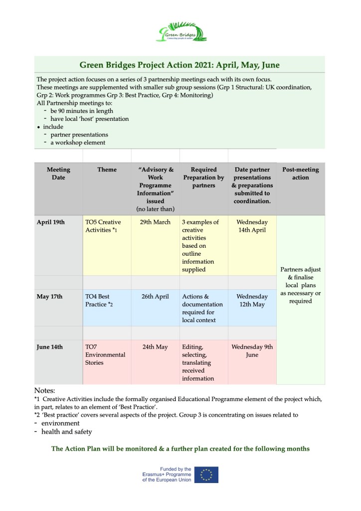 Dates for virtual meetings were agreed and an outline schedule which, when Covid restrictions were removed at local level, allowed for practical outdoor work & group activities.