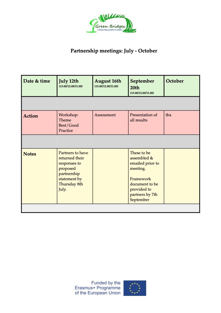 The 4th update was created at the end of May, allowing for partners to discuss their plans for the final months of the project – with potential for alteration of autumn sections should restrictions caused by the pandemic been lifted sufficiently.