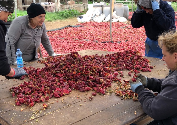 - Peppers, onions, pork produced as a spicy sausage – or paste usable in cooking