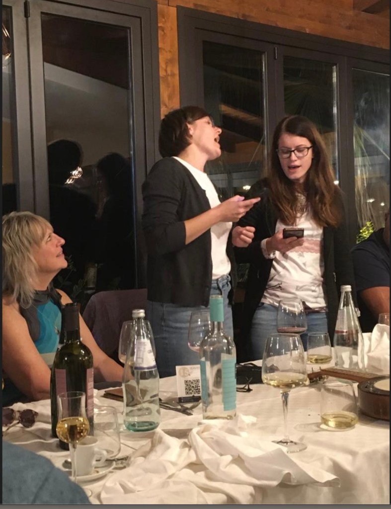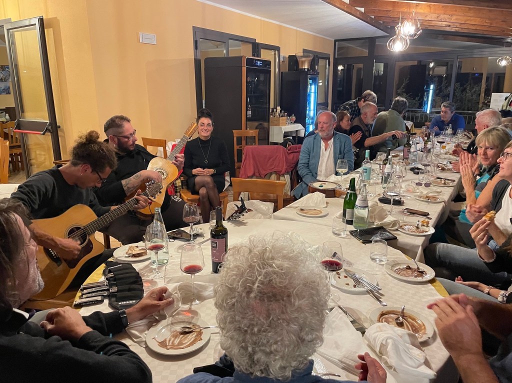 The song ‘Bella Ciao’ sung enthusiastically by those (all?) present.