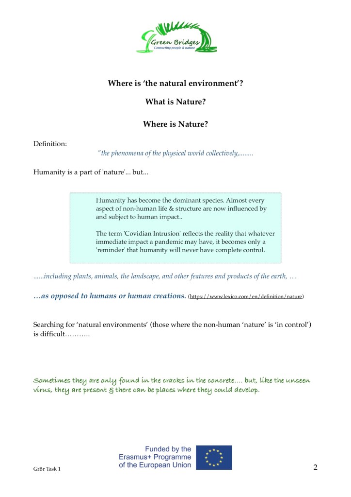 - A Common Task: ‘Where is the Green Bridge’ (related to work during the cancelled UK Learning & Teaching meeting)